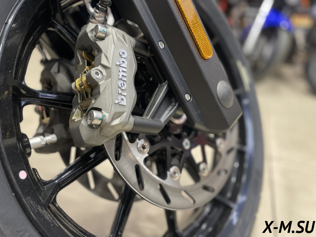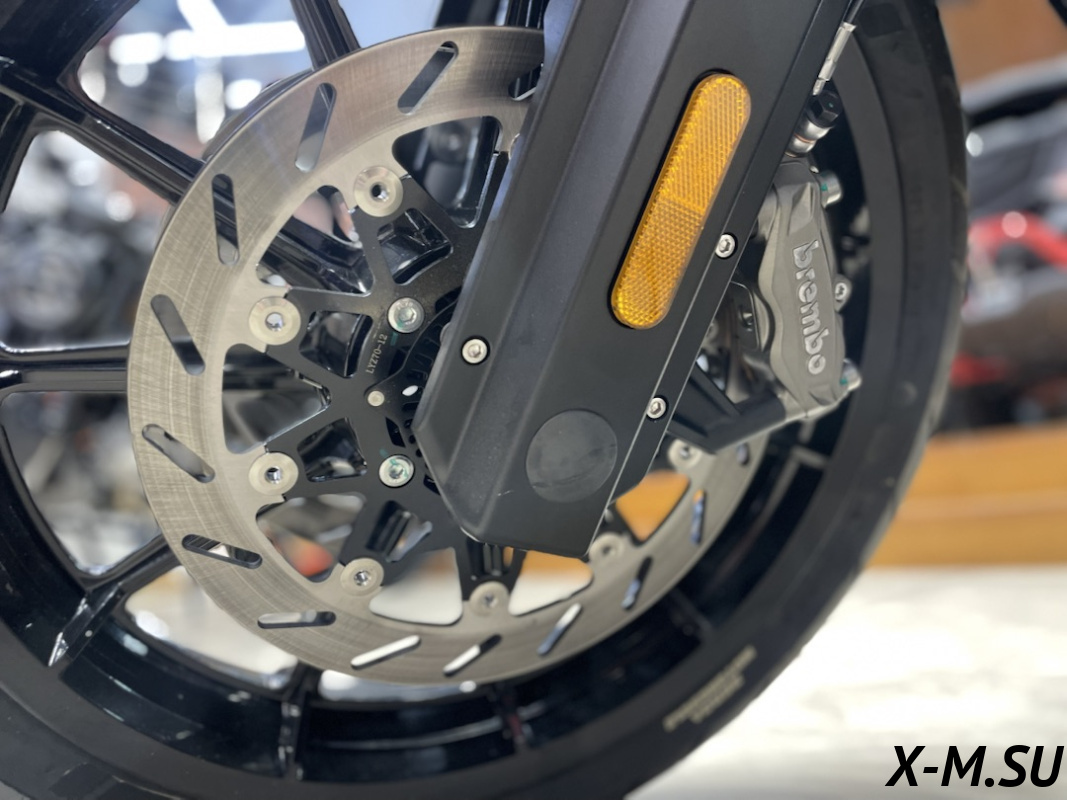 ПЕРЕДНЯЯ ТОРМОЗНАЯ СИСТЕМА - Два плавающих тормозных диска 320мм, 2 радиальных четырёхпоршневых суппорта Brembo